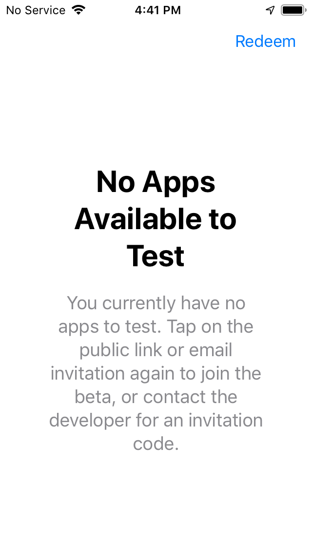 9. Once TestFlight is installed, if you open TestFlight you will see the screen to the right: |